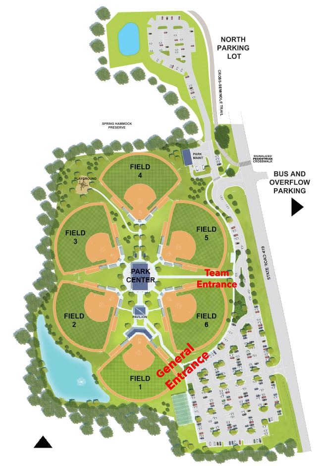 Boombah-Soldiers Creek Park Facility Map (Softball Championships) Print Physical Address: 2400 FL-419 Longwood, FL 32750 Tickets: All tickets available exclusively via GoFan with parking included in cost of admission All parking lots and spectator gates open 60 mins prior to first scheduled game each day